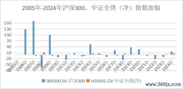复盘金融市场过去近20年的历史收益表现仁信,从中可以看出,股市和债市均难以实现持续性上涨,大部分年限都存在着“股债跷跷板”效应,但也不乏股债市场同涨的情形。